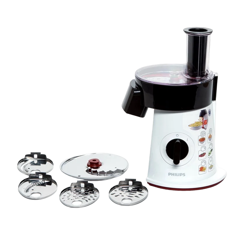 , 200W power output, cutting disc fine, cutting disc coarse, rasping disc fine, rapselscheibe coarse, julienne plate, chips-disc, 1 speed level, white