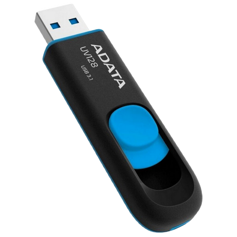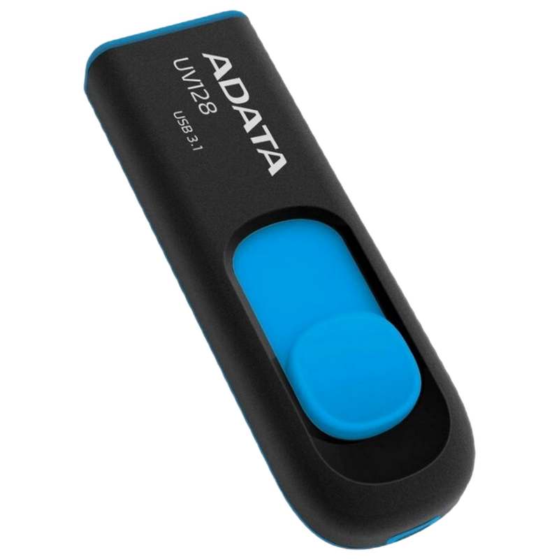 Характеристики 16GB USB3.1 Flash Drive ADATA "UV128", Black-Blue, Plastic, Slider (R/W:40/20MB/s)