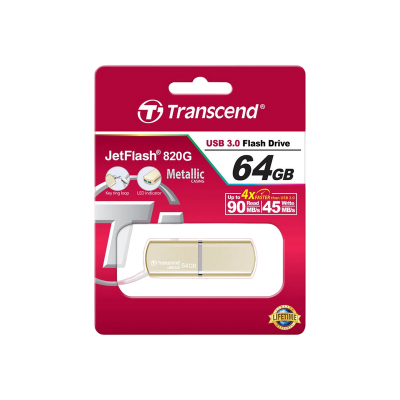Характеристики  64GB USB3.1 Flash Drive Transcend "JetFlash 820", Gold, Metal Case, Luxury Design (R/W:90/30MB/s)
