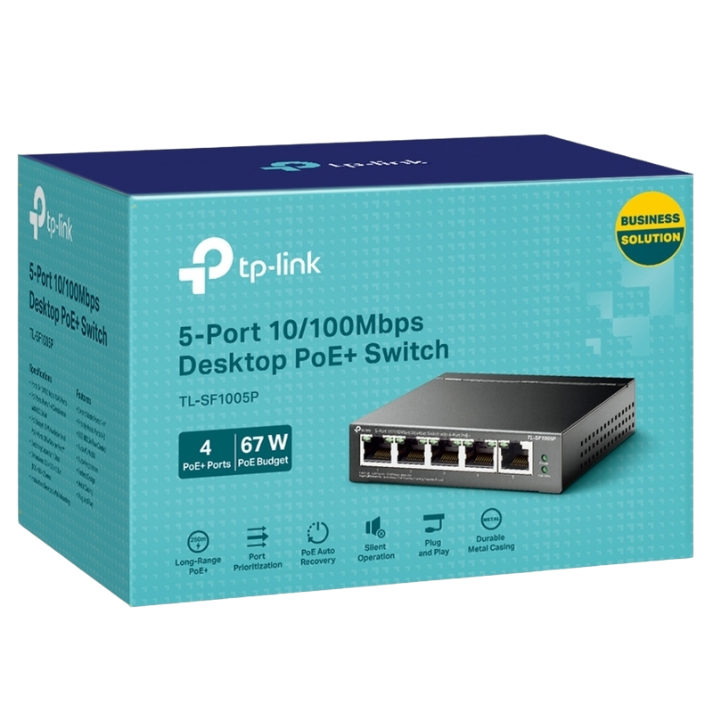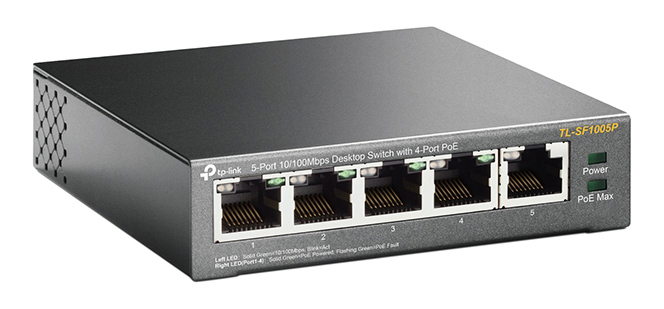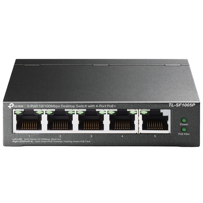 Характеристики .5-port 10/100M TP-LINK PoE Switch, TL-SF1005P, with 4 Port PoE, 67W Budget, steel case