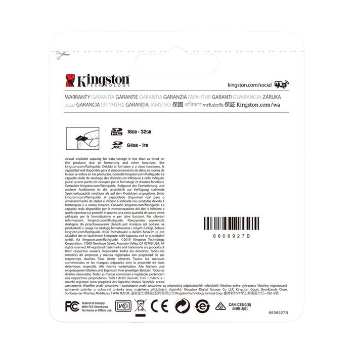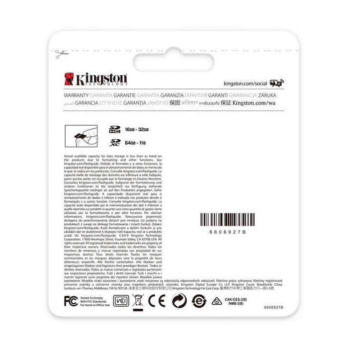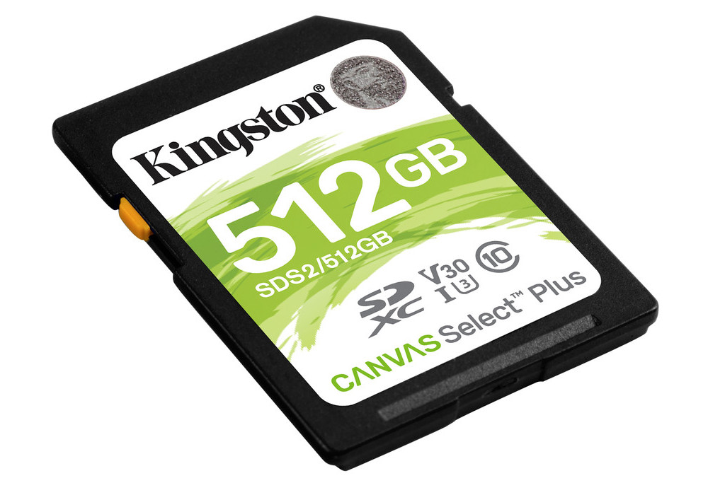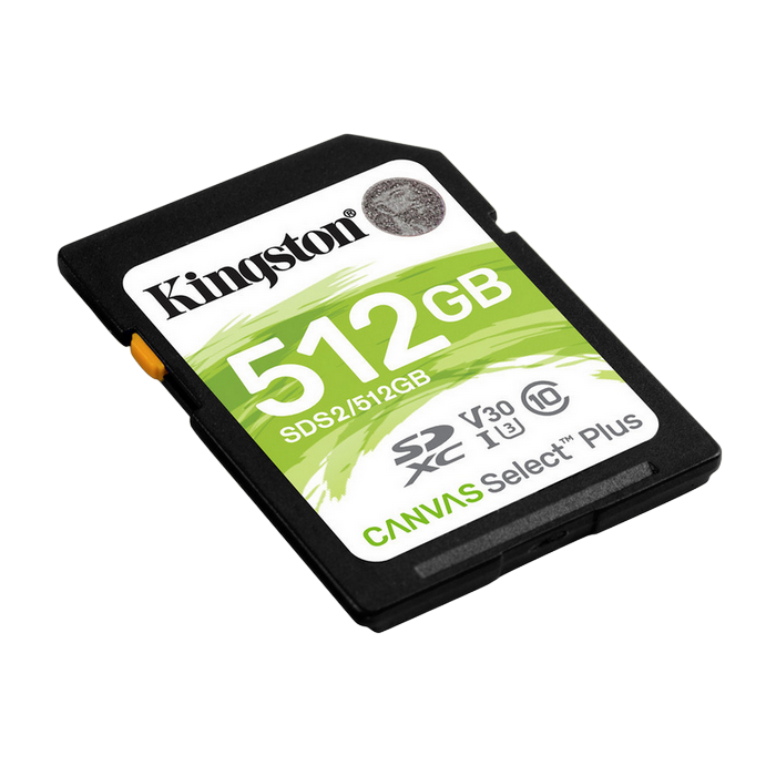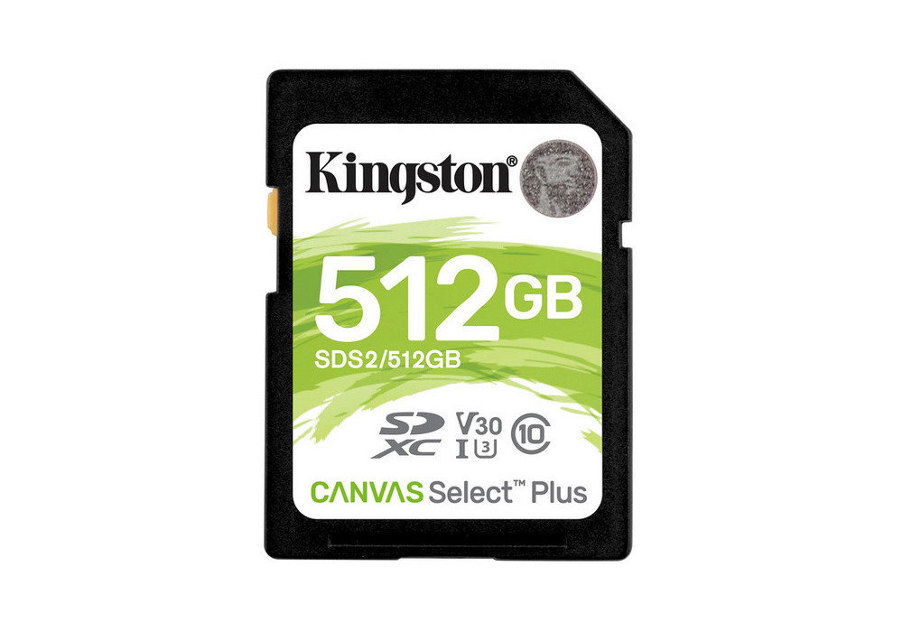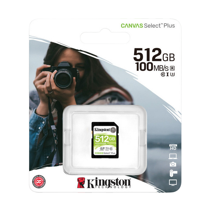 Характеристики .512GB SDXC Card (Class 10) UHS-I , U3, Kingston Canvas Select Plus "SDS2/512GB" (R/W:100/85MB/s)