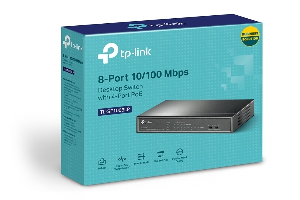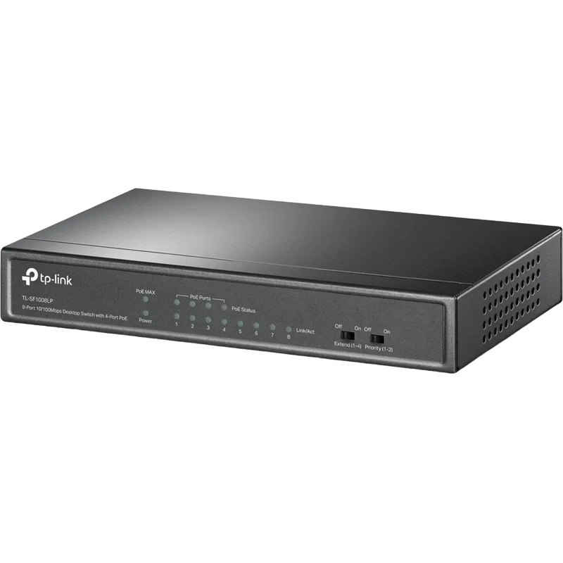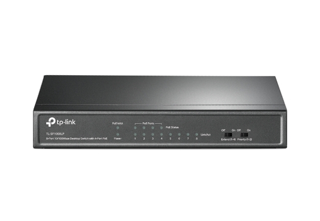 Характеристики .8-port 10/100M TP-Link PoE Switch, TL-SF1008LP, 4x PoE ports, 41W Budget, Steel Case