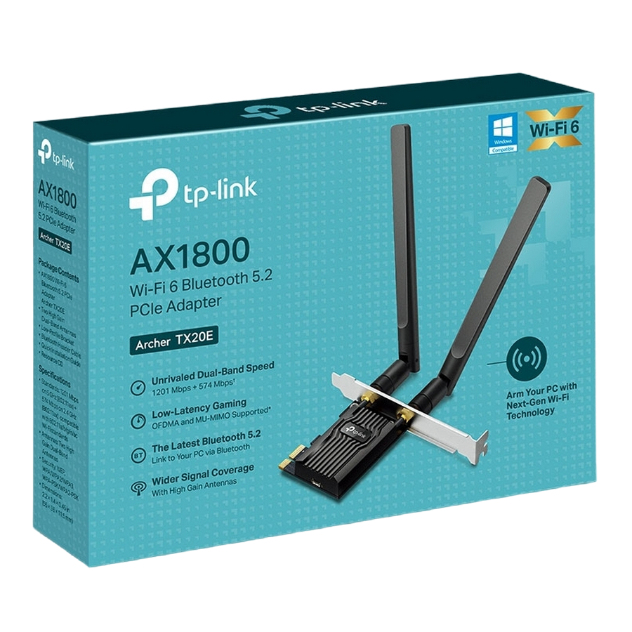 PCIe Wi-Fi 6 Dual Band LAN/Bluetooth 5.2 Adapter TP-LINK "Archer TX20E", 1800Mbps, OFDMA