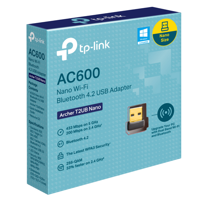 USB2.0 Nano Wi-Fi AC Dual Band LAN + Bluetooth 4.2 Adapter TP-LINK "Archer T2UB Nano", 600Mbps