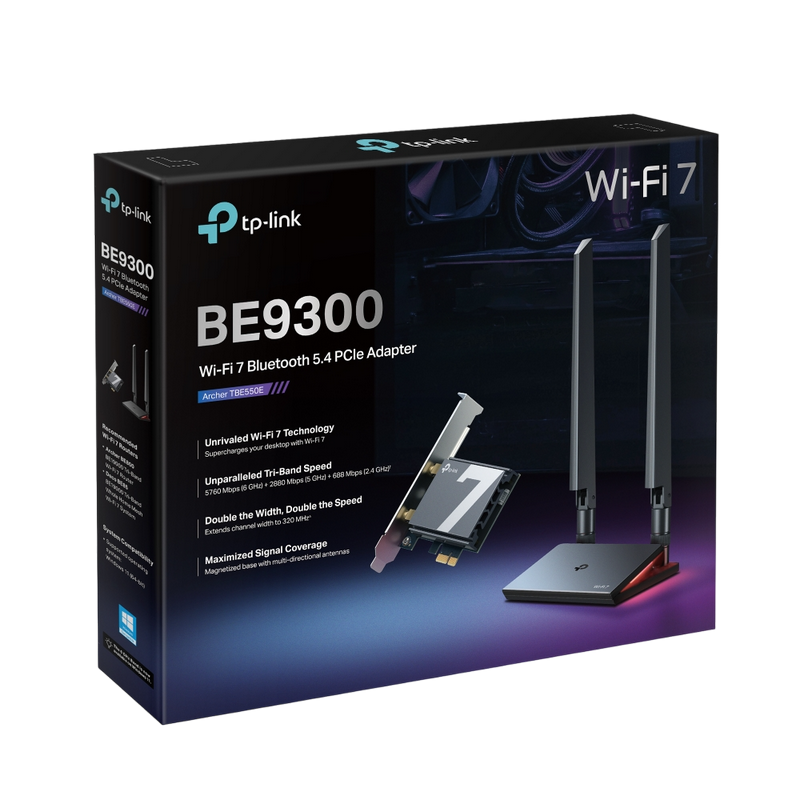 PCIe Wi-Fi 7 Tri-Band LAN/Bluetooth 5.4 Adapter TP-LINK "Archer TBE550E", 9300Mbps, Magnetic High-Ga