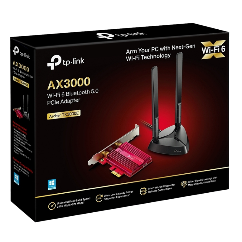 PCIe Wi-Fi 6 Dual Band LAN/Bluetooth 5.0 Adapter TP-LINK "Archer TX3000E", 3000Mbps, MU-MIMIO