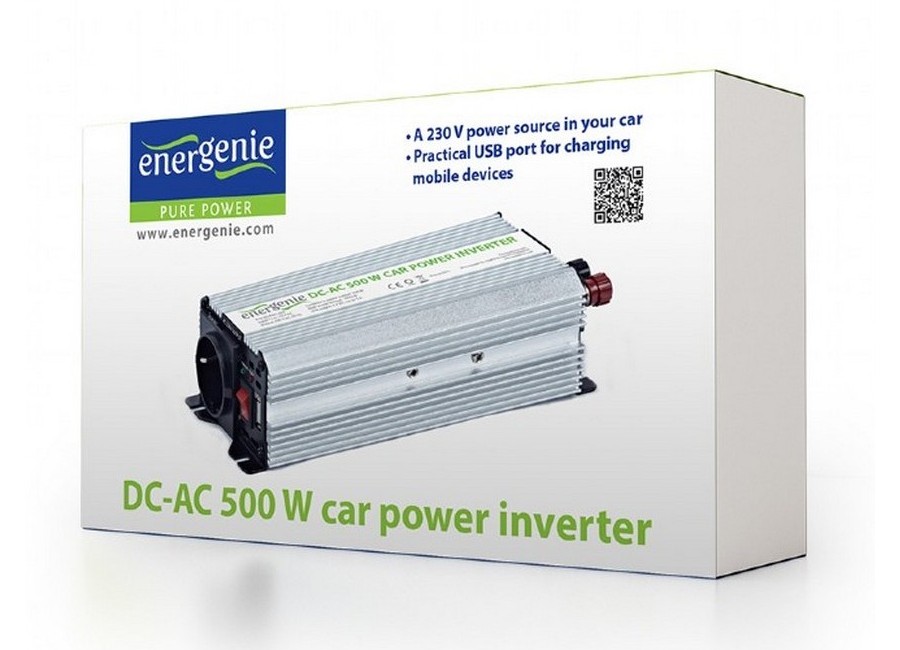 Inverter Energenie car power: Max.500W, Input: 10-16 VDC (accumulator directly), 1xUSB-A, 1xSchuko S