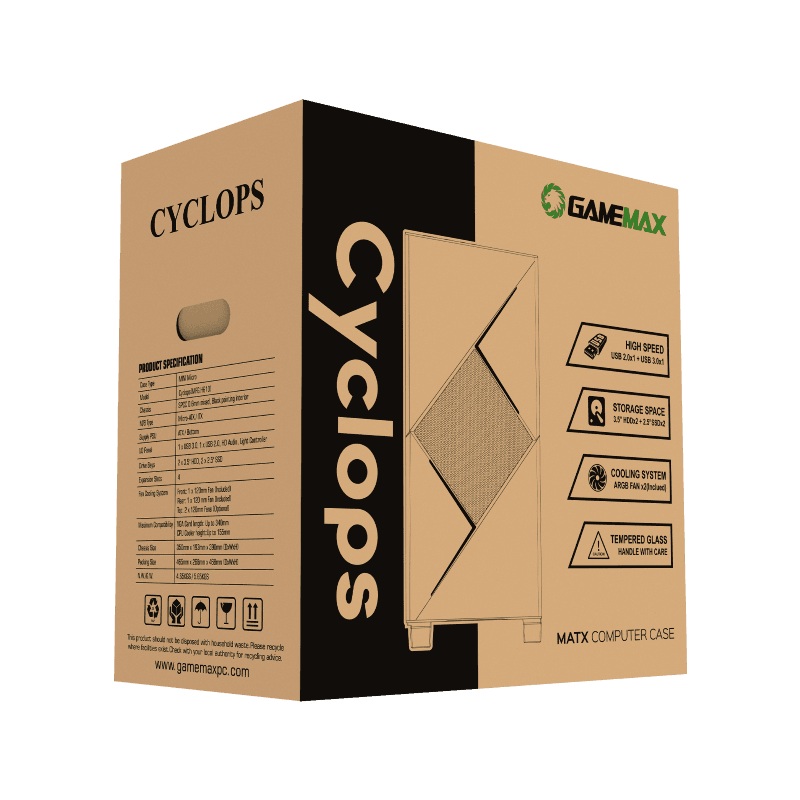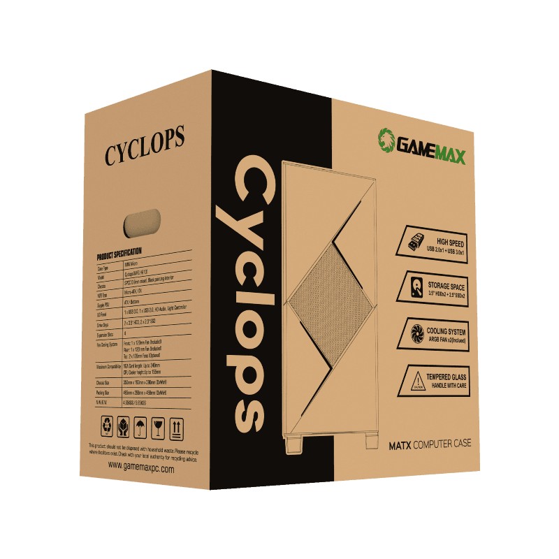 Характеристики Case mATX GAMEMAX Cyclops, w/o PSU, 0.6mm, 2x120mm ARGB, ARGB Hub, Top Mesh, Tempered Glass, Dust Fi