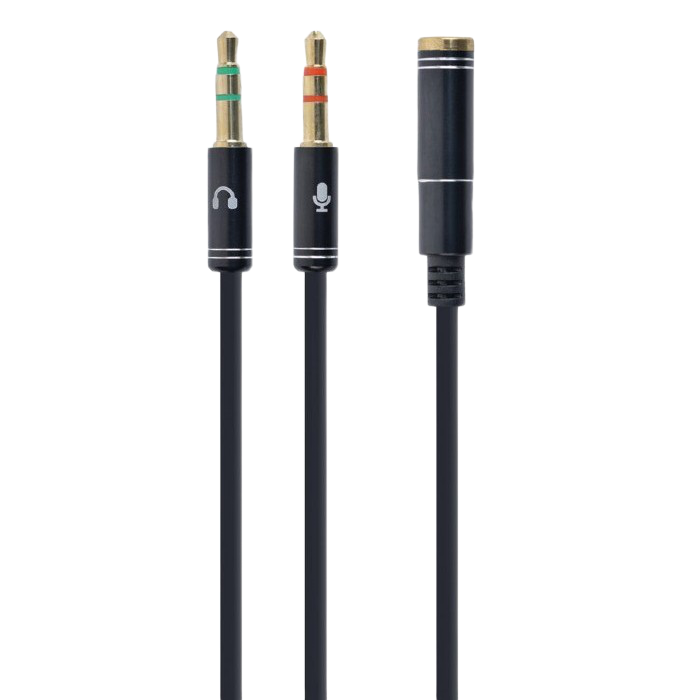 CCA-418M 3.5 mm 4-pin F to 2 x 3.5 mm stereo plug adapter M, black, metal connectors