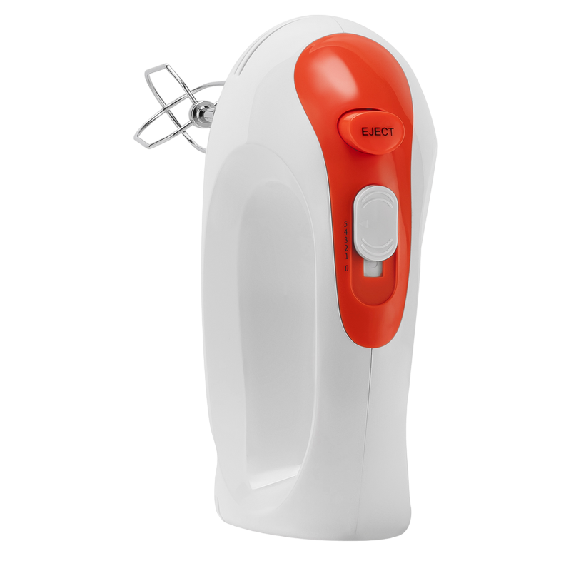 , 300W power output, 5 speed levels. 2x dough hook, 2x beater, white