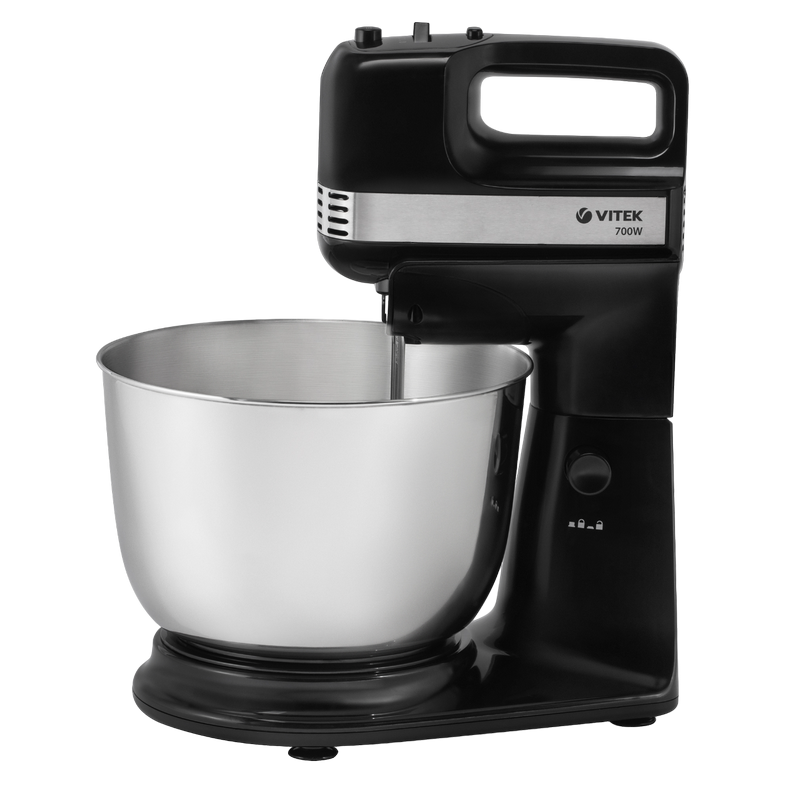 , 700W power output, 4L, 5 speed levels, 2x dough hook, 2x beater, black