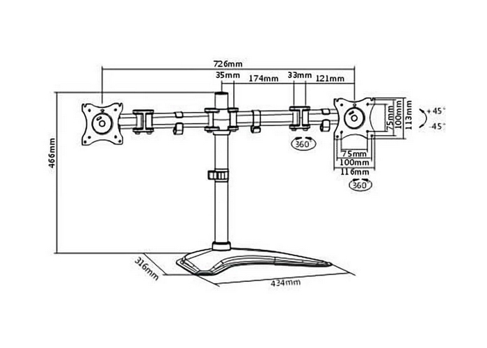 Table/desk stand for 2 monitors ITech MBS-12M, 13"-27 ", 75x75, 100x100, up to 8kg
