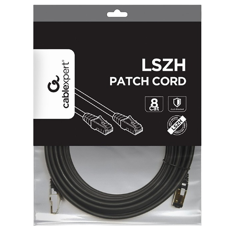 Характеристики Patch Cord Cat.8 10m, Black, PP8-LSZHCU-BK-10M, Cablexpert, Low Smoke Zero Halogen (LSZH)