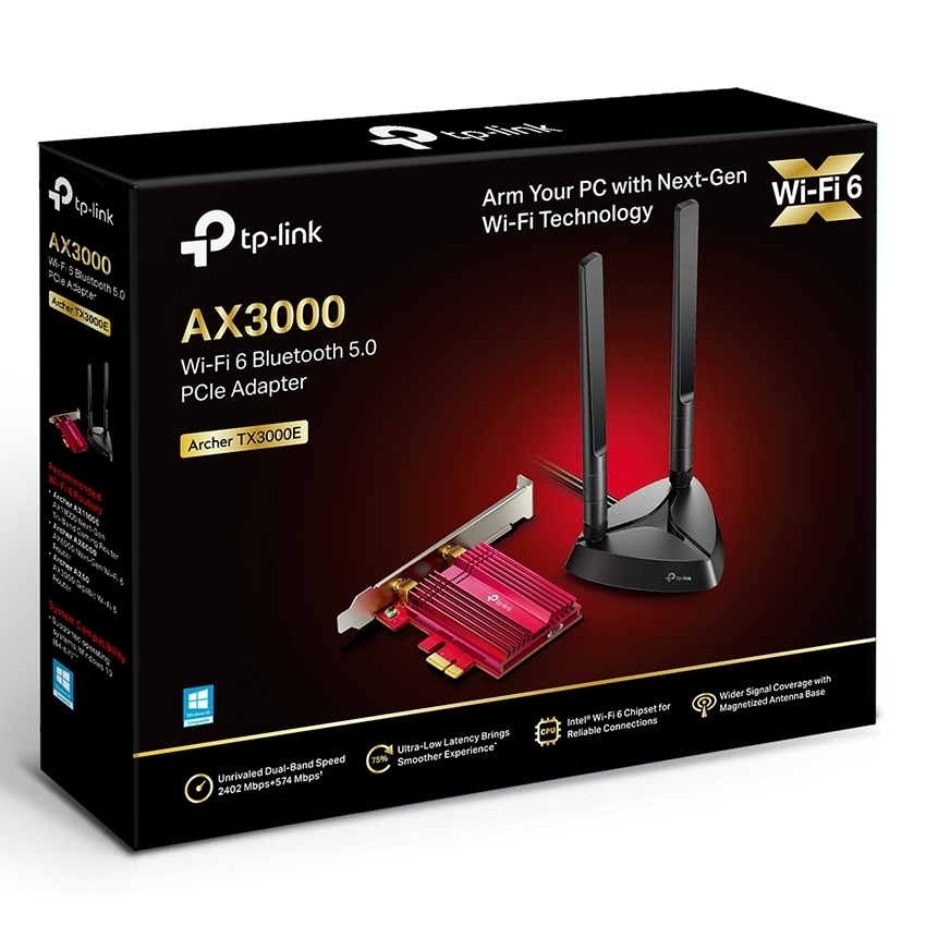 Характеристики PCIe Wi-Fi 6 Dual Band LAN/Bluetooth 5.0 Adapter TP-LINK "Archer TX3000E", 3000Mbps, MU-MIMIO