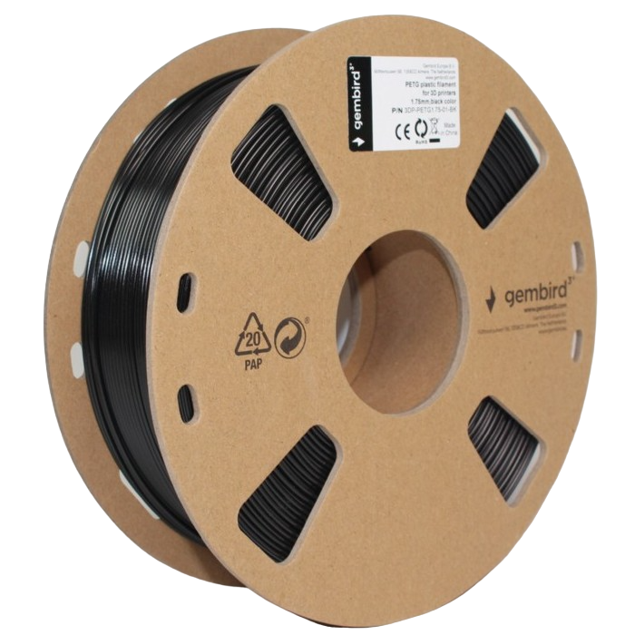 PETG 1.75 mm, Gembird Black Filament, 1 kg, 3DP-PETG1.75-01-BK