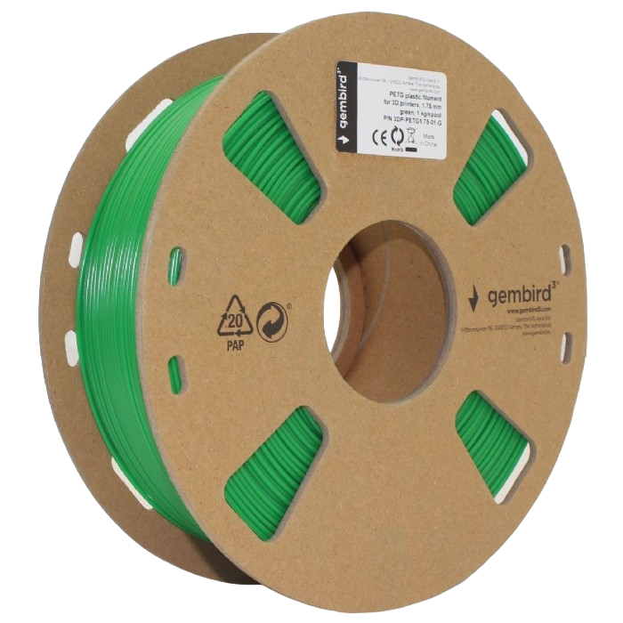 PETG 1.75 mm, Gembird Green Filament, 1 kg, 3DP-PETG1.75-01-G