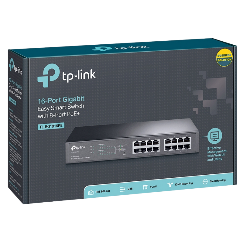 16-port Gigabit Smart PoE+ Switch, TP-LINK "TL-SG1016PE", 8xPoE Ports, 150W Budget