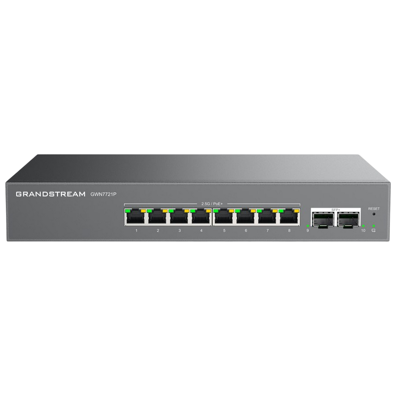 .8-port 10/100/1000/2500Mbps Lite Managed Switch Grandstream "GWN7721P", 8 Ports PoE+, 2xSFP+, Budge