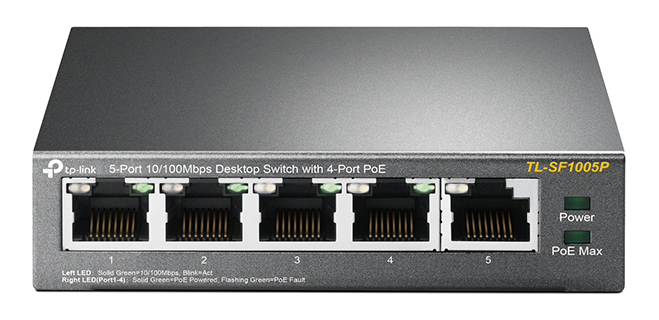 .5-port 10/100M TP-LINK PoE Switch, TL-SF1005P, with 4 Port PoE, 67W Budget, steel case