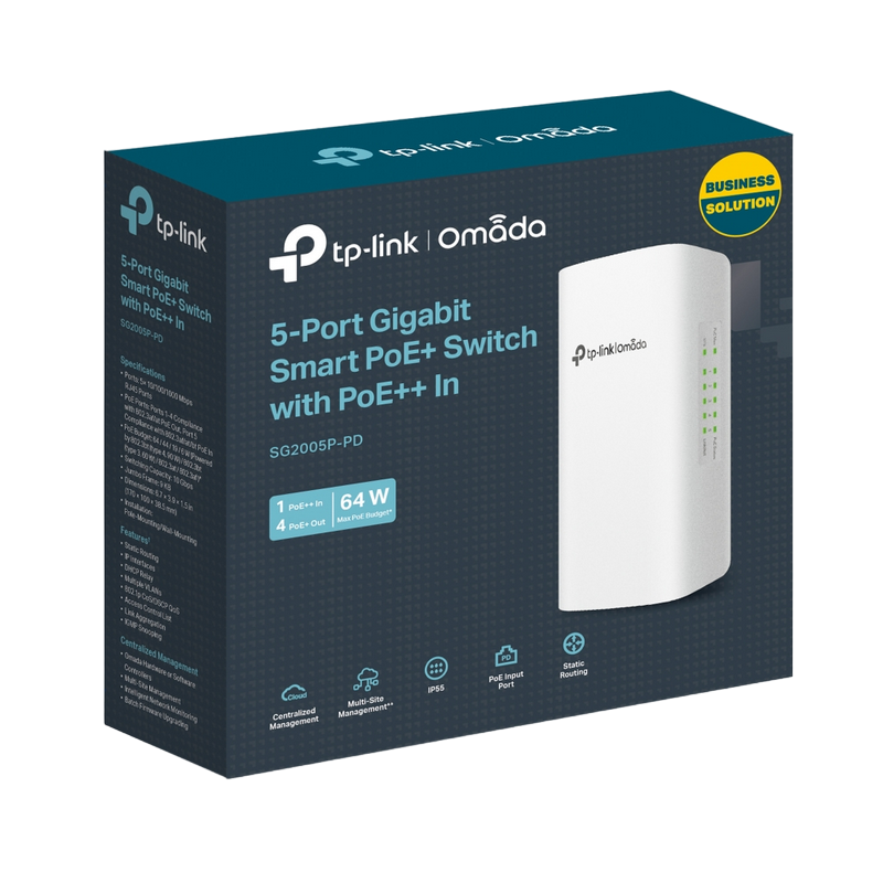 .5-port External Smart Gigabit Switch TP-LINK "SG2005P-PD", 4xPoE+ Out, 1xPoE++ IN, UV/Lightning Pro