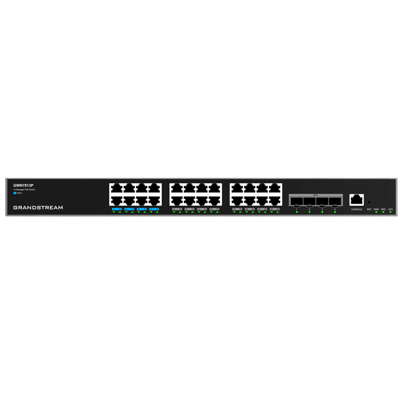 24-port Gigabit Layer 3 Managed PoE++ Switch, Grandstream "GWN7813P", 24xPoE, 4x10Gbit SFP+, Stackab