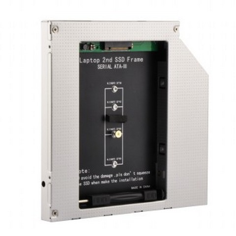 Laptop DVD slot adapter for SATA M.2 solid-state memory card, 12.7 mm height, A-SATA12M2-01