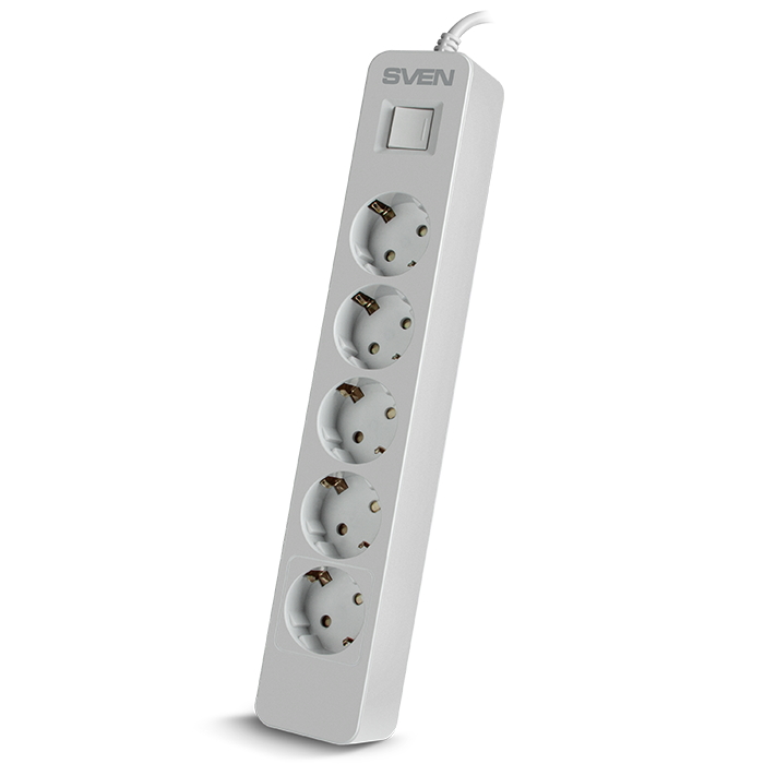 Surge Protector 5 Sockets, 3.0m, Sven "SF-05", White, retail box, flame-retardant material