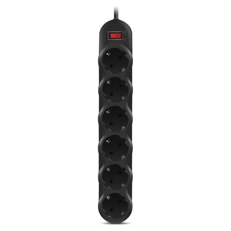 Surge Protector 6 Sockets, 5.0m, Sven "SF-06E", Black, flame-retardant material