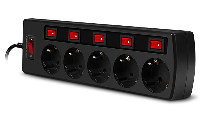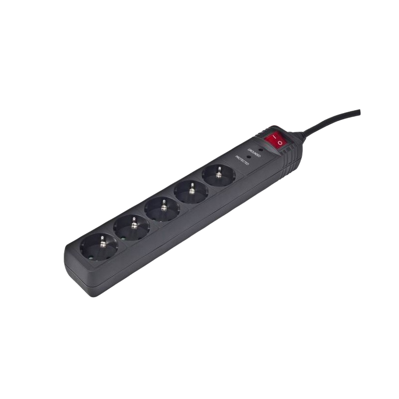 Surge Protector 5 Sockets, 3.0m, Sven "SF-05PL", BLACK, individual switches, flame-retardant
