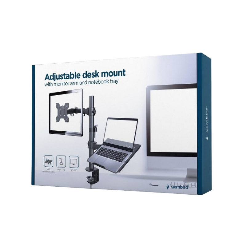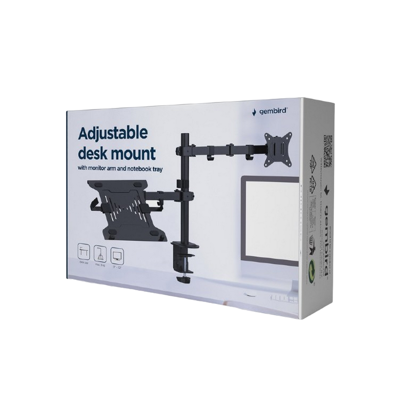 Table/desk 1-display & notebook mounting "MA-DA-03" Gembird (rotate,tilt,swivel),17”-32”,up to 9 kg,