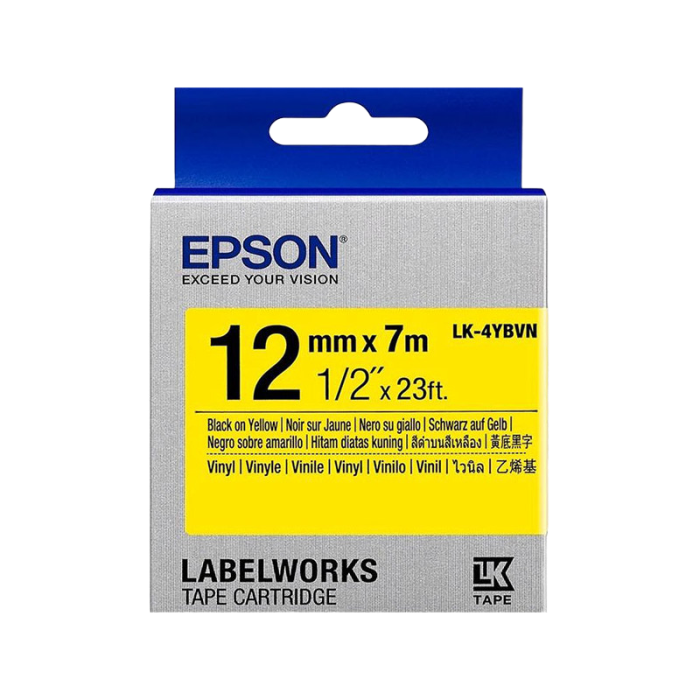 Характеристики Tape Cartridge EPSON LK-4YBVN; 12mm/7m Vinyl, Black/Yellow, C53S654042