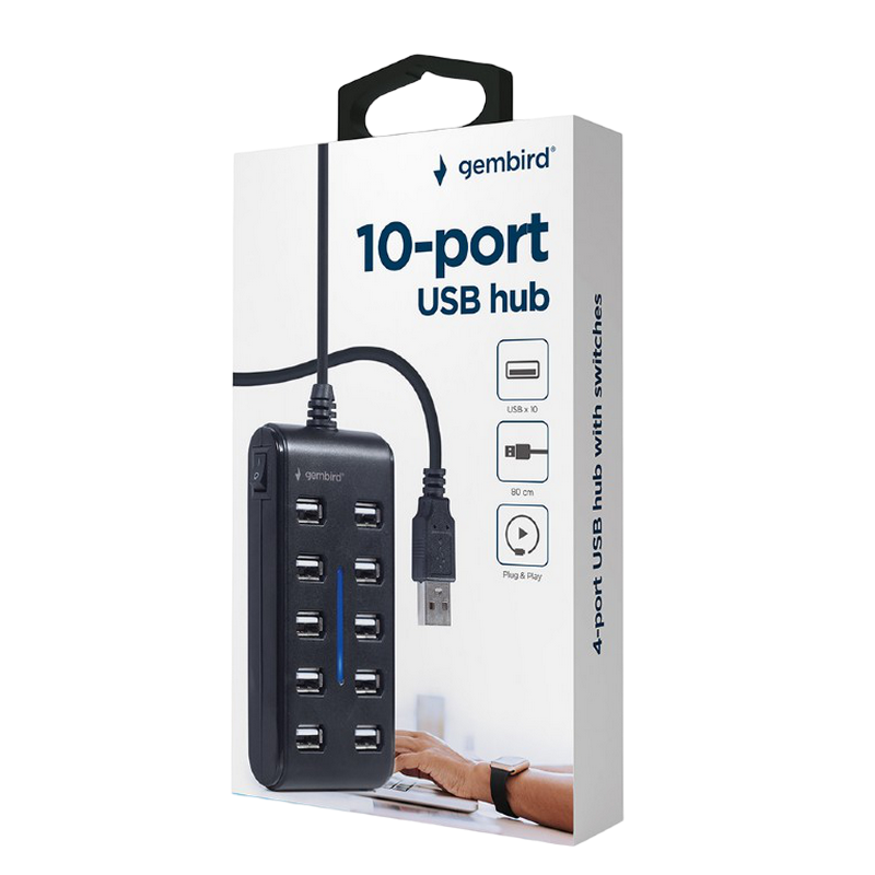 Характеристики USB 2.0 Hub 10-port Gembird "UHB-U2P10P-01", Black