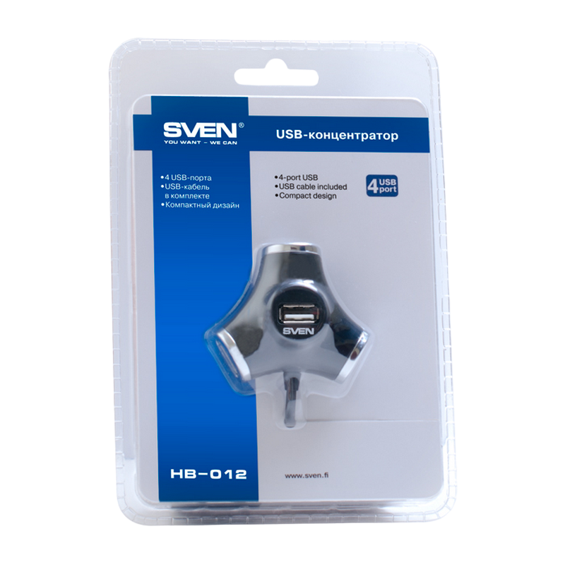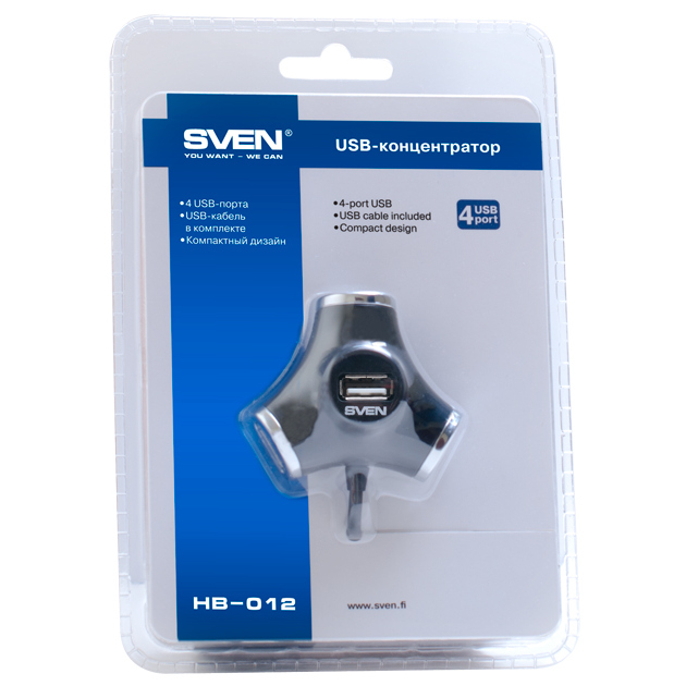 Характеристики USB 2.0 Hub 4-port SVEN "HB-012", Black