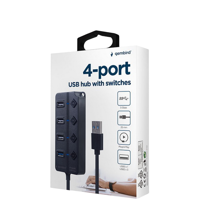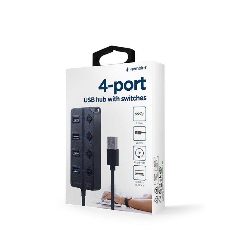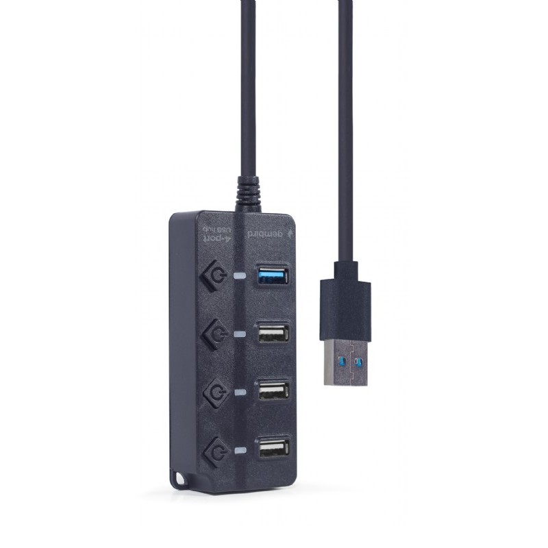 USB 3.0 Hub 4-port with switches, Output: 1*USB3.0; 3*USB2.0, Gembird "UHB-U3P1U2P3P-01", Black