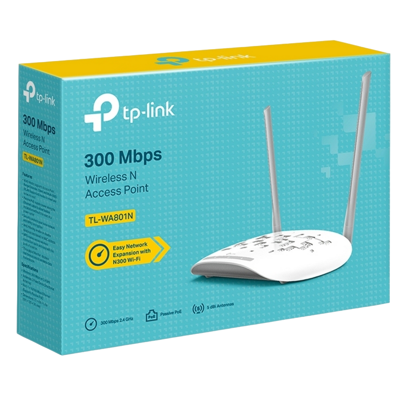 Характеристики Wi-Fi N Access Point TP-LINK "TL-WA801N", 300Mbps, 2x5dBi, MIMO, PSU/PoE