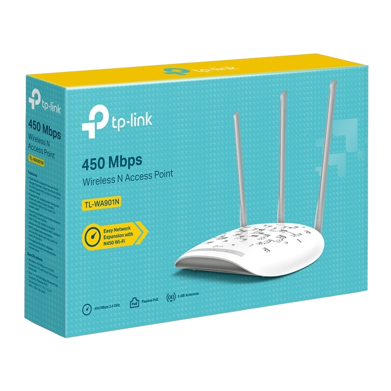 Характеристики Wi-Fi N Access Point TP-LINK "TL-WA901N", 450Mbps, 3x5dBi, MIMO, PSU/PoE